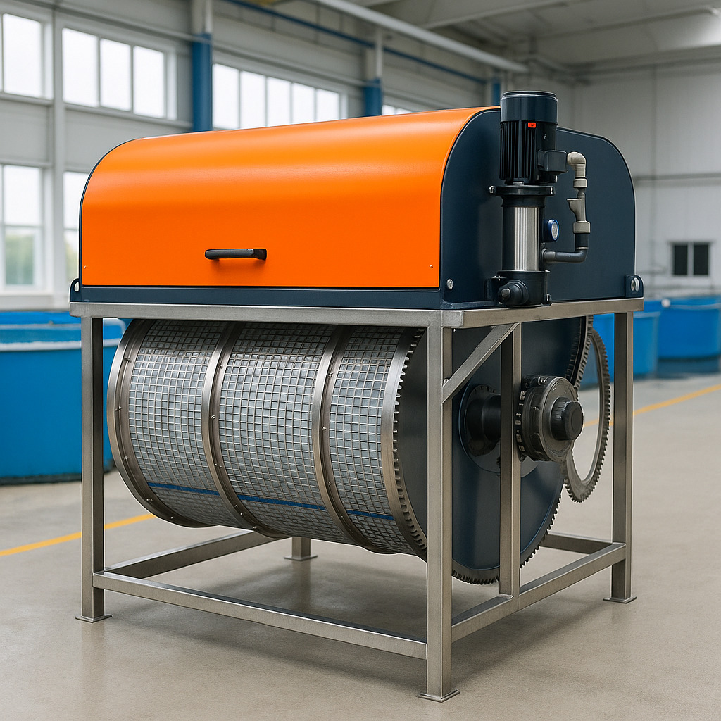 Le tambour lui-même ? Entièrement immergé, résistant à la corrosion et équipé tamis à fils métalliques en coin de précision de 60 à 74 μm qui piègent les solides en suspension avant qu'ils n'atteignent vos biofiltres ou UV.